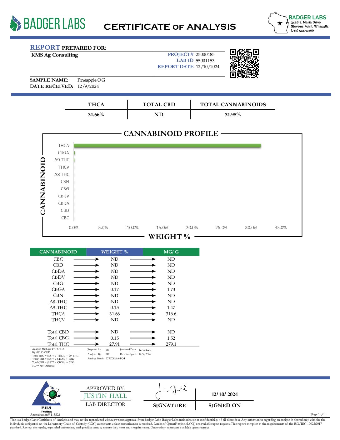 Pineapple OG – Hybrid/Sativa – 31.6% THCA